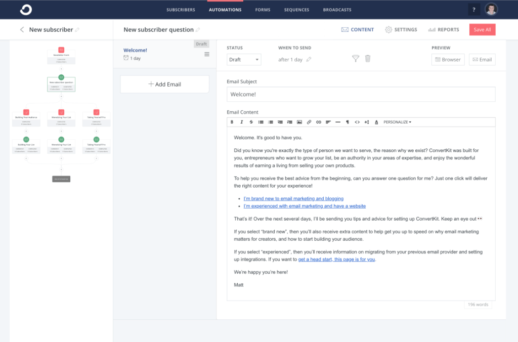 Now as bloggers and small businesses we want an email automation system that allows us to follow our customer journey from end to end.