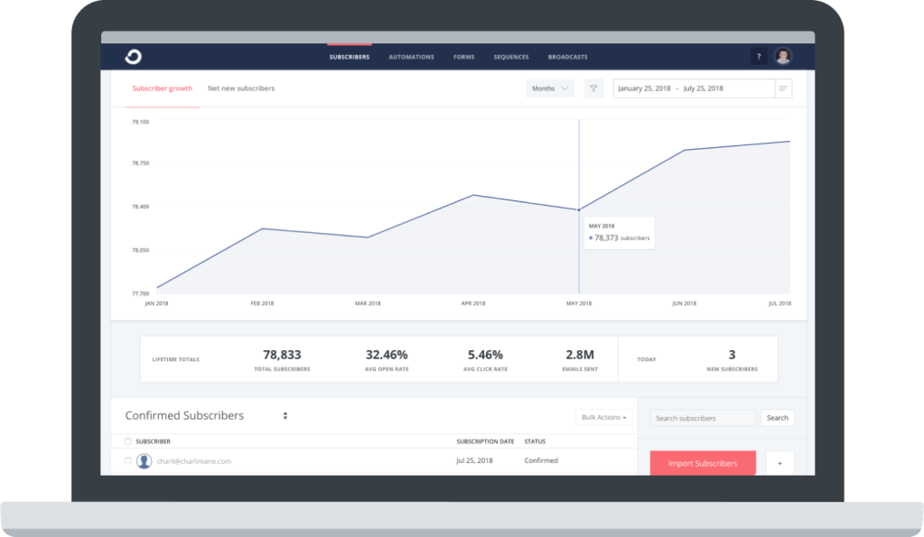 - Email marketing – ah this one’s simple. ConvertKit lets you create your monthly or weekly content or marketing newsletters to send to your mailing lists.