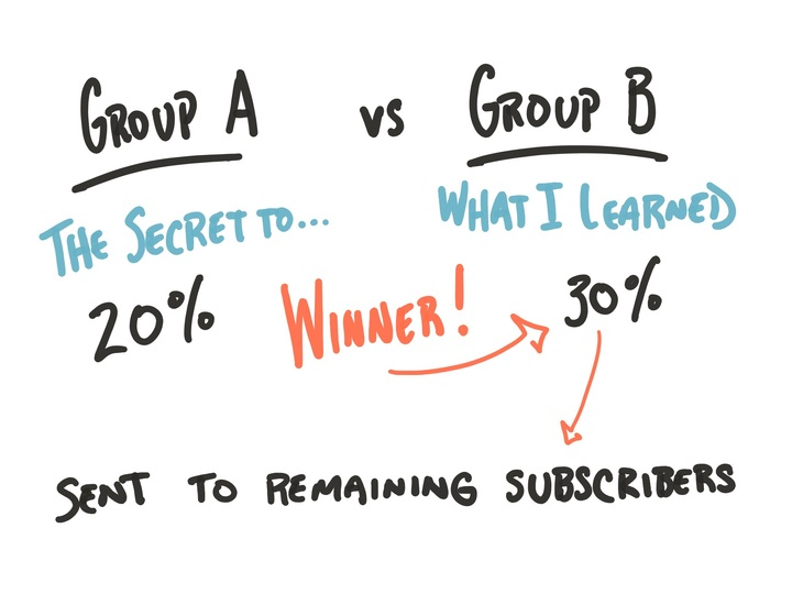 I also love their A/B testing for email headlines! This lets me see what headline gets opened more by sending two headers to a total of 30% of my overall audience – and then chooses the right one for me after an initial 4 hour testing period. Then send the rest of my emails with this winner header so I get more opens and hopefully more clicks! This feature is totally unique to ConvertKit!