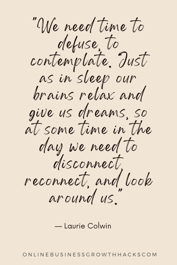 32. “We need time to defuse, to contemplate. Just as in sleep our brains relax and give us dreams, so at some time in the day we need to disconnect, reconnect, and look around us.”