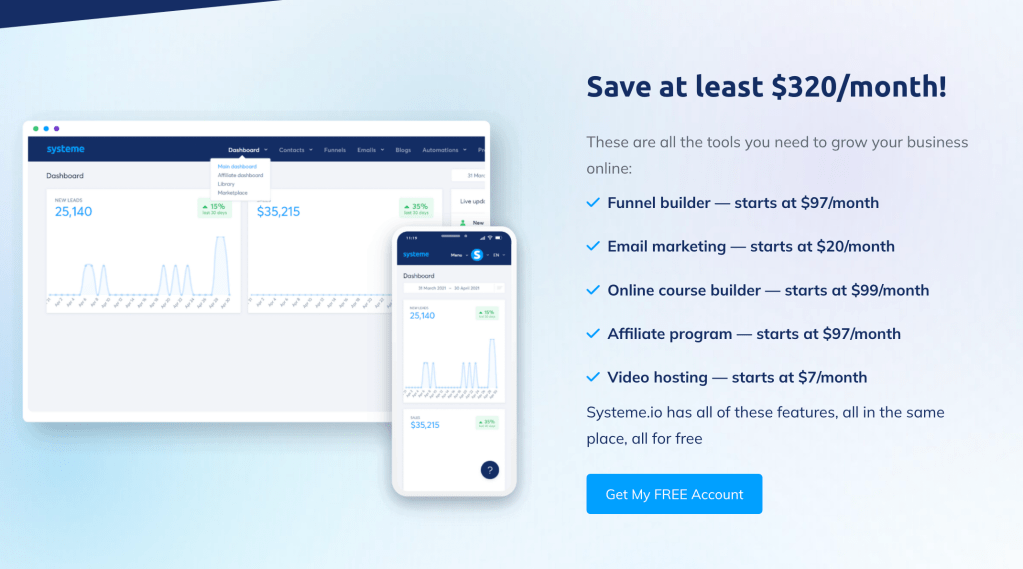 Systeme is the perfect solution to help you manage your affiliate program. With its detailed dashboard, you can easily manage your affiliates, send out commissions, and keep track of your performance.